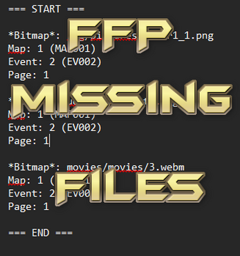 With this plugin you can playtest your game and whenever you come across a missing file (audio or graphic) this plugin will replace the file with a preset file and write it in a log file which file went missing without breaking the game.